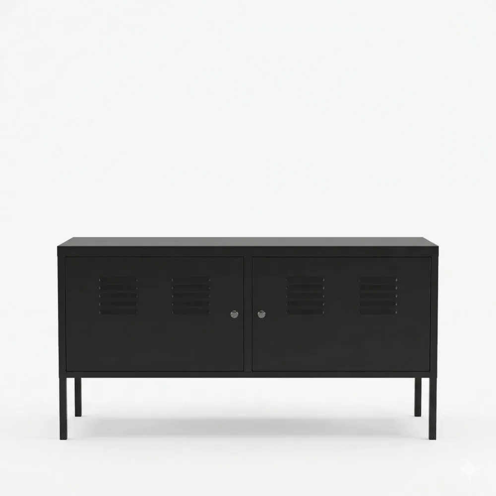 Wohnzimmerschrank mit abschließbaren Türen, der Stauraum bietet.